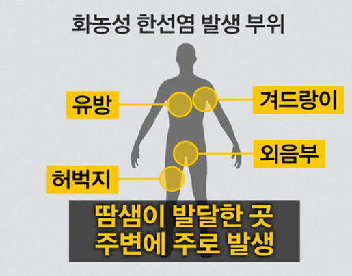 화농성 한선염이라는 단어를 들어보신 적 있으신가요? 이 질환은 피부에 있는 땀샘에 반복적으로 염증이 생기는 희귀질환으로, 겨드랑이나 엉덩이 등에 붉은 종기가 나타나고 고름이 터지면서 흉터가 생기는 증상을 보입니다.